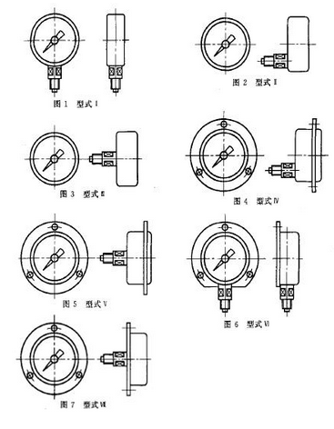 压力表按螺纹接口及安装方式可分为:直接安装式、嵌装(盘装)式、凸装(墙装)式,以满足各行各业的使用要求。详见如下表及图。